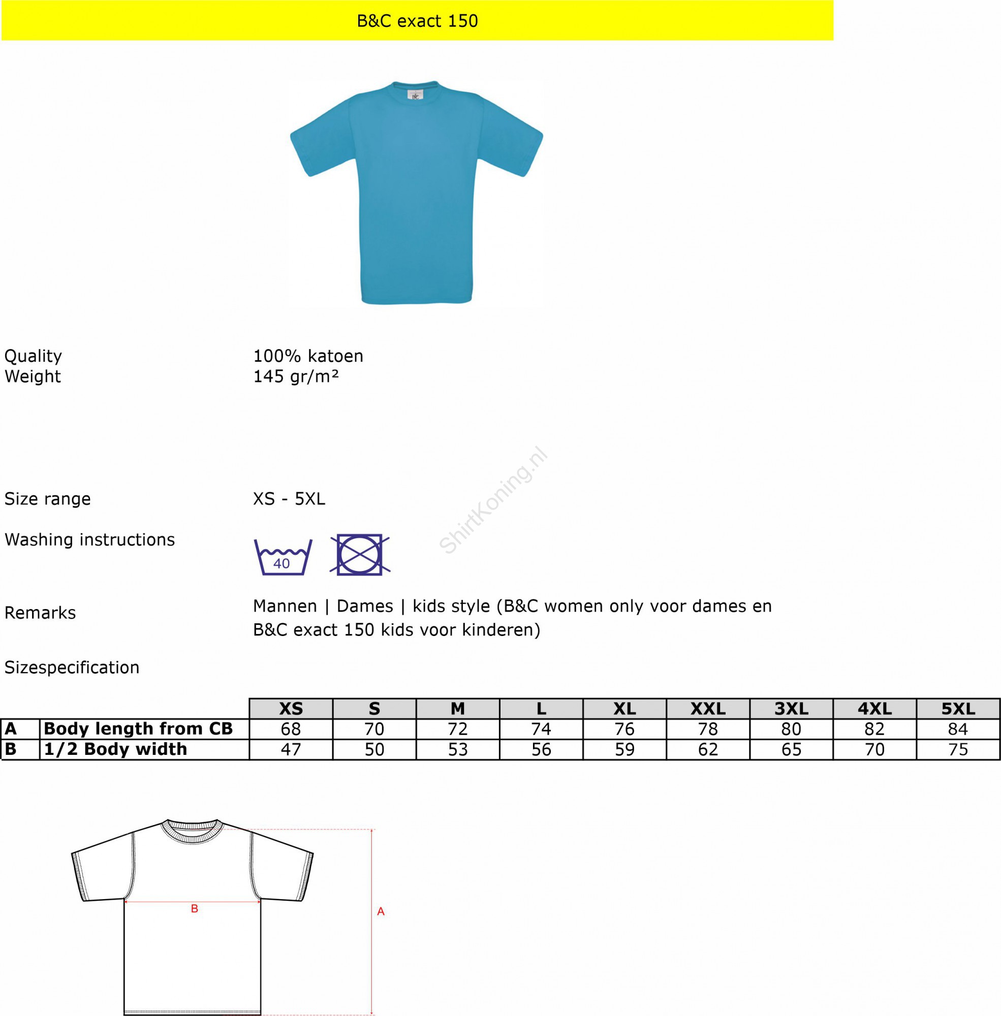 Zoekt u een kleur of maat die hier niet bij staat, mail (info@shirtkoning.nl) of bel (040-2573521) ons.